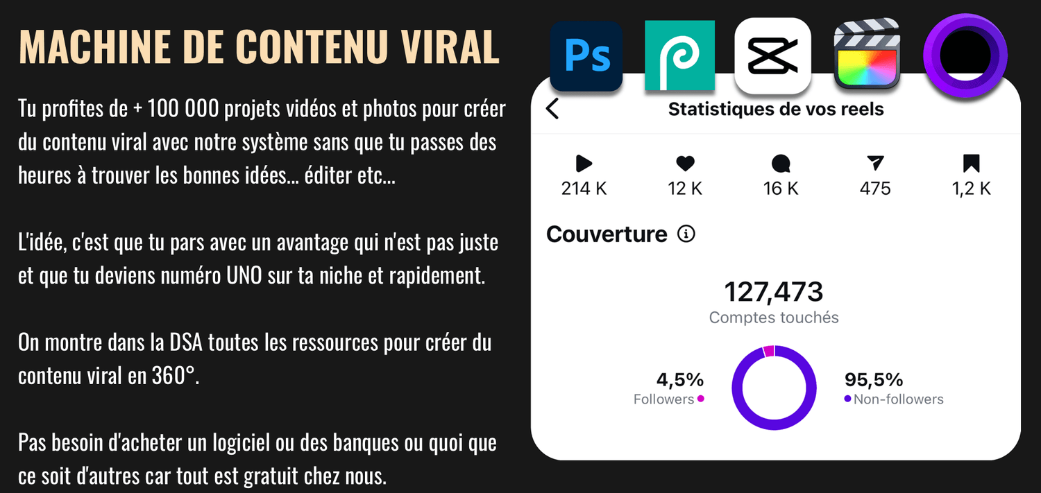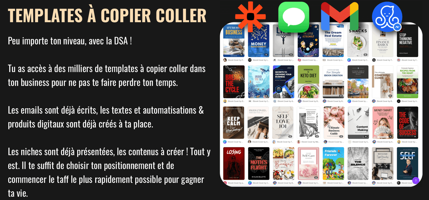 Tout ce qu'il te suffit de faire, c'est de suivre étape par étape la formation et de copier coller toutes nos stratégies et notre système pour générer tes premiers milliers d'euros en automatique.